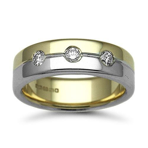 18ct Gold 2 Colour Natural Diamond Rubover set Wedding Ring