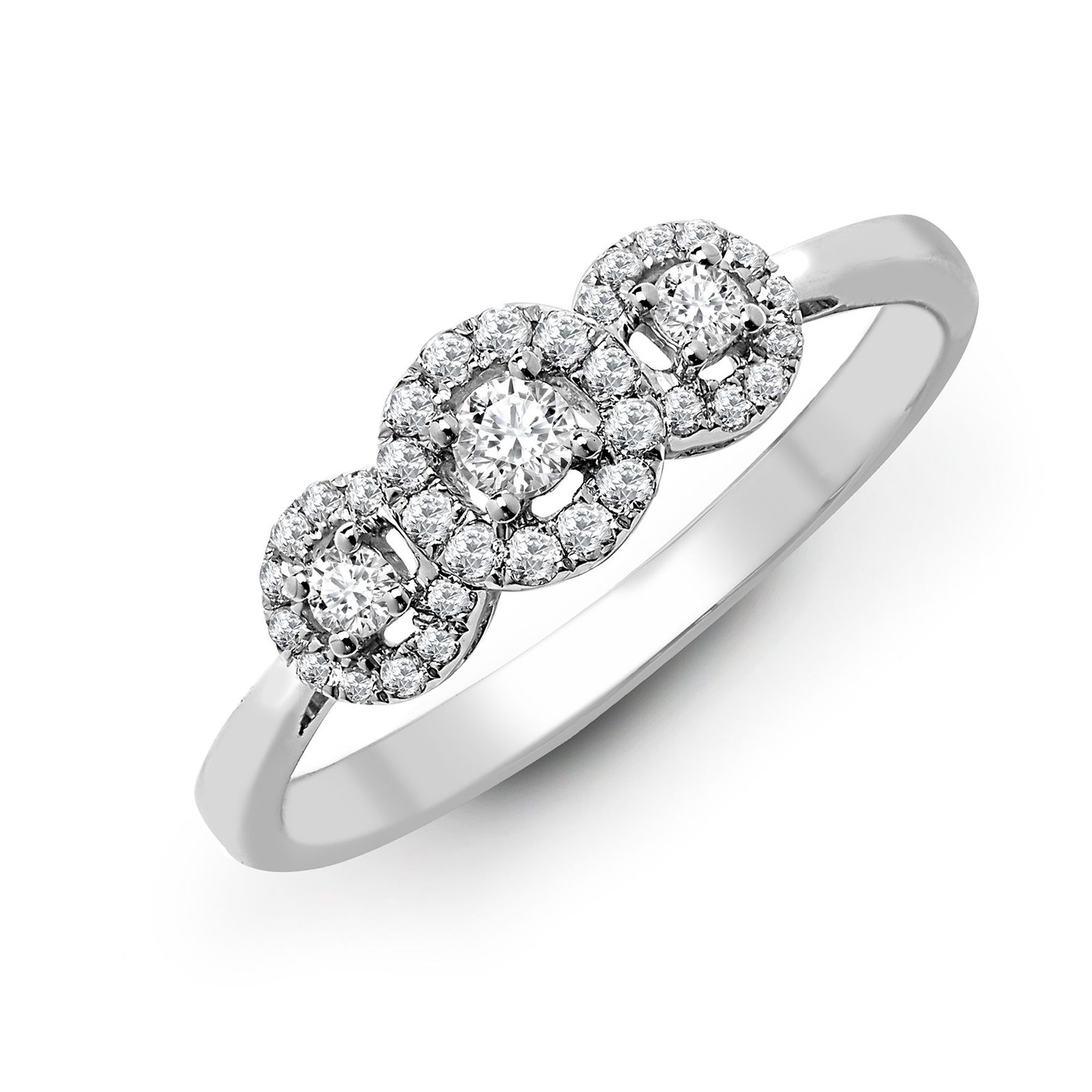 JN Jewellery 18ct White 0.60ct Natural Diamond Trilogy Halo Ring