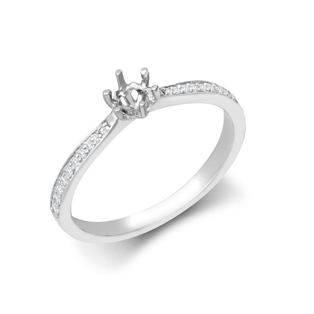 18ct White Gold 0.24ct Natural Diamond Pave set 6-claw Ring Mount- Holds 0.25ct