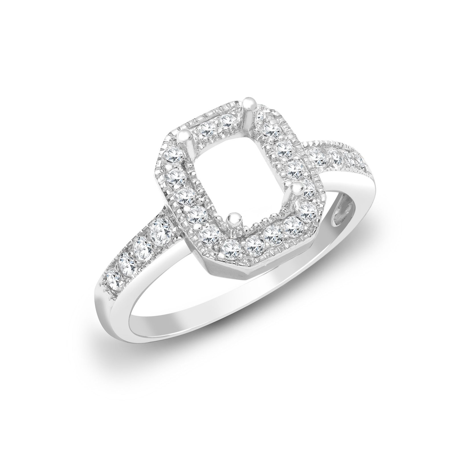 JN Jewellery 18ct White Gold 43pt Semi Set Natural Diamond Ring Mount. Fits 7x5mm