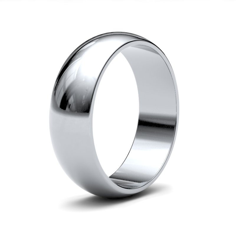 Bespoke hand-made 18ct White Gold 6mm d-shape light weight wedding / commitment ring. Features a brilliant hand-polished mirror-like finish. Each Bespoke jewellery item is unique and made to order, and therefore will be despatched within 2 weeks. Please note that bespoke, personalised and engraved items cannot be returned.