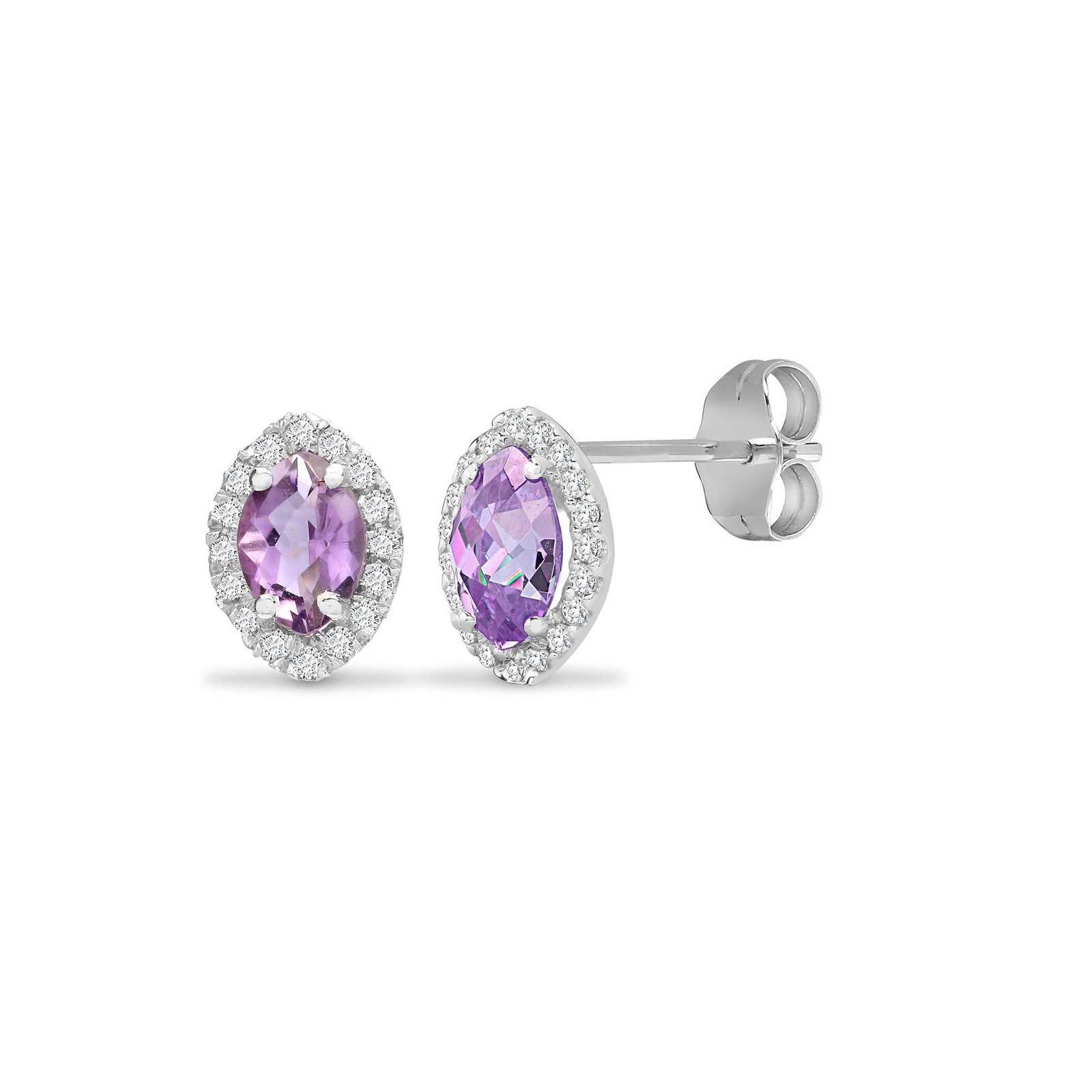 18ct White gold Natural Diamond 15pt and amethyst 1.07ct stud earrings.