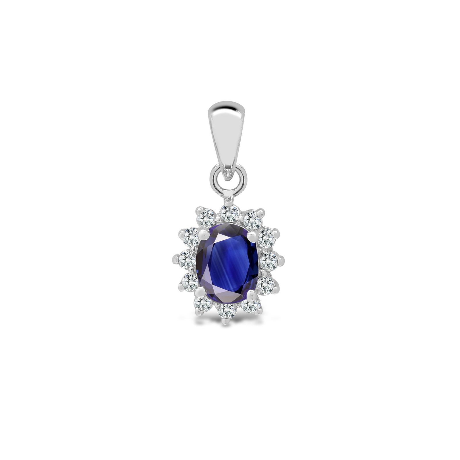 18ct White gold Natural Diamond 9pt and sapphire 52pt pendant. (Height includes bale/loop)
