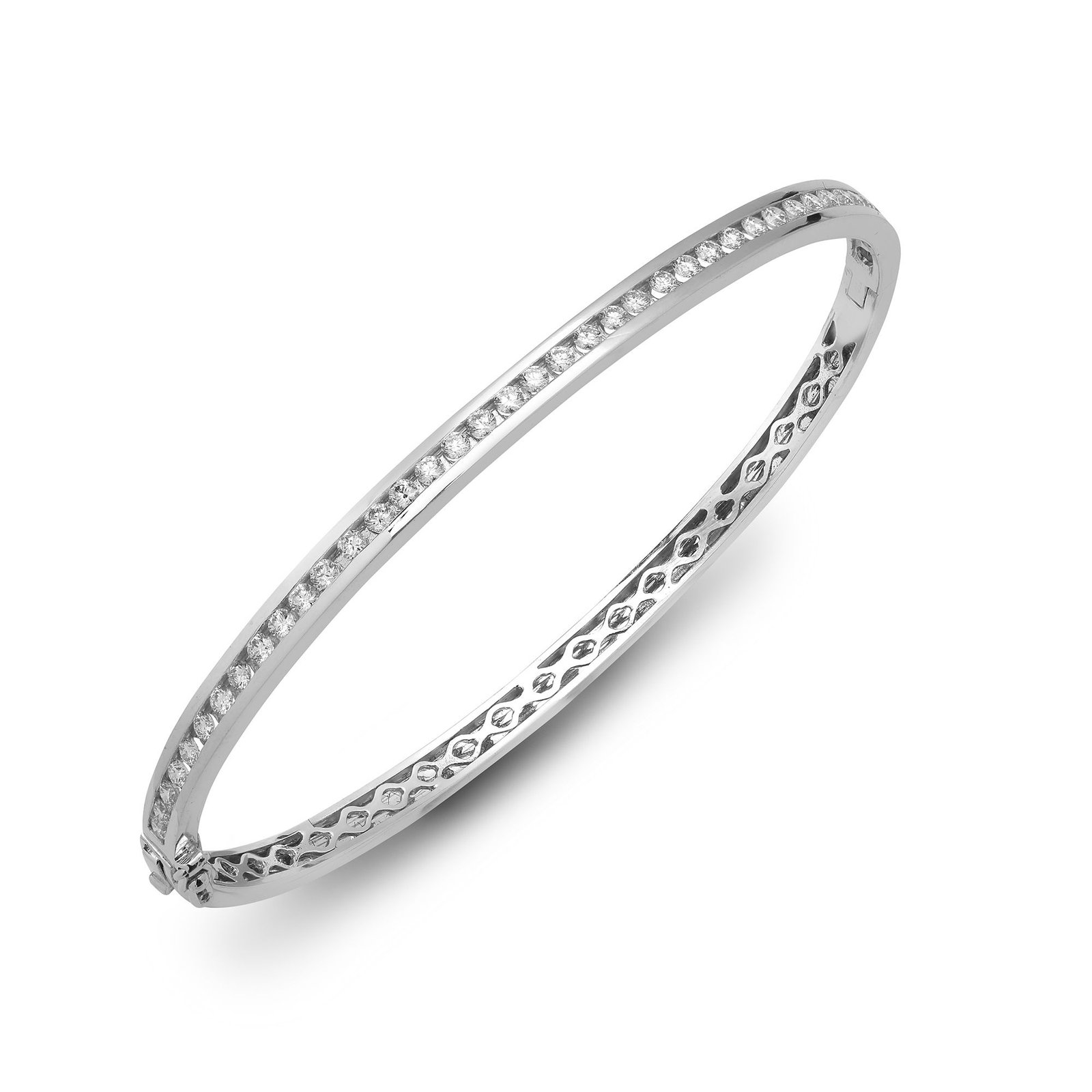 18ct White gold 95pt channel set Natural Diamond hinged bangle.