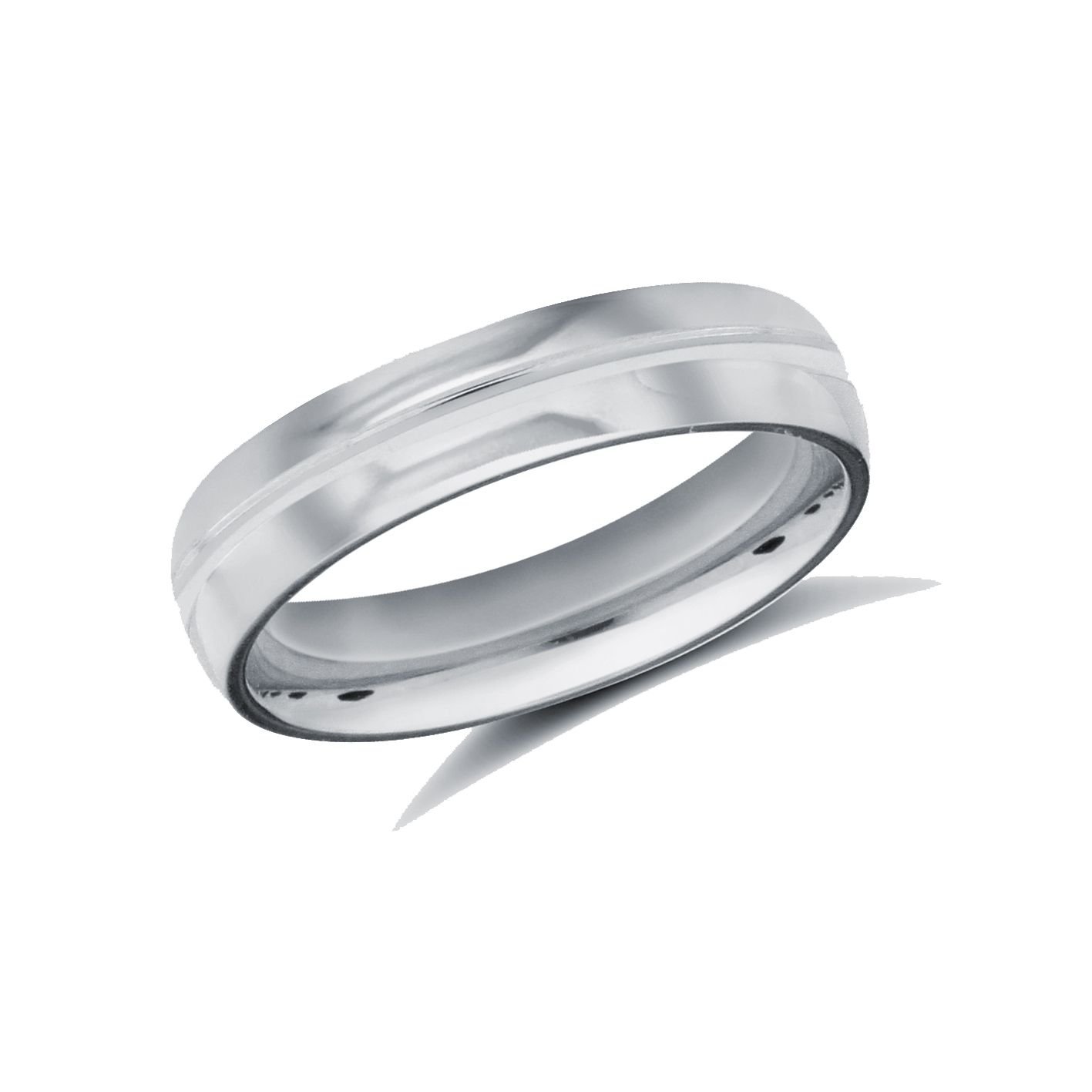 18ct White Gold Standard Weight Court Profile Centre Groove Wedding Ring