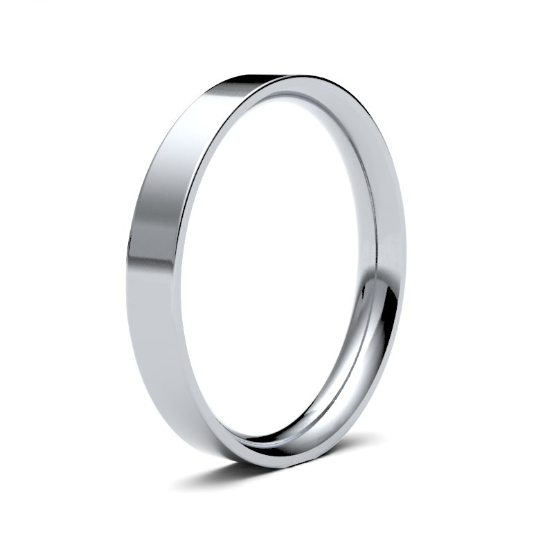 Bespoke hand-made 18ct White Gold 3mm standard weight Flat Court wedding / commitment ring. Features a brilliant hand-polished mirror-like finish. Each Bespoke jewellery item is unique and made to order, and therefore will be despatched within 2 weeks. Please note that bespoke, personalised and engraved items cannot be returned.