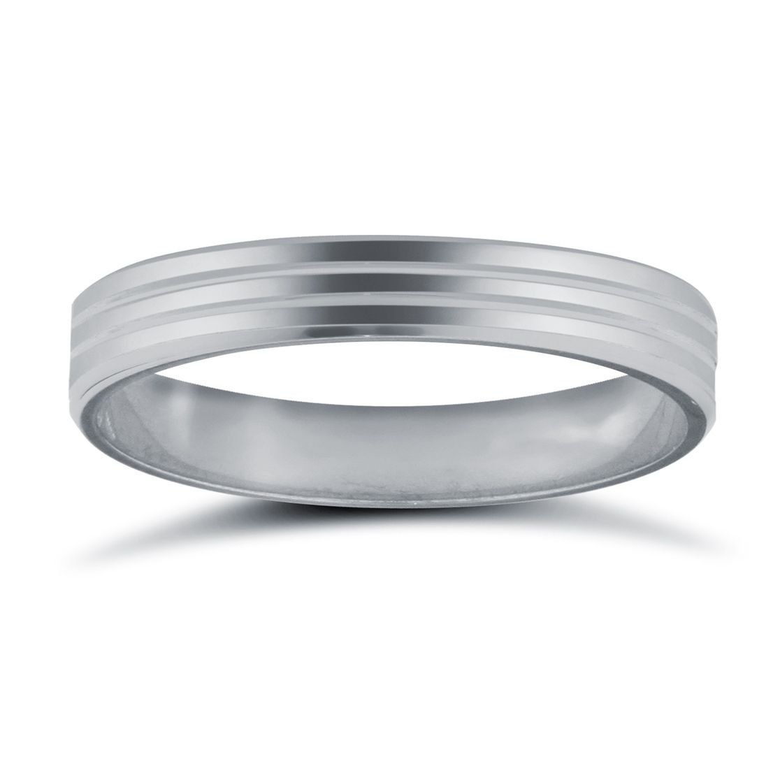 18ct White Gold Standard Weight Flat Profile Double Groove Wedding Ring