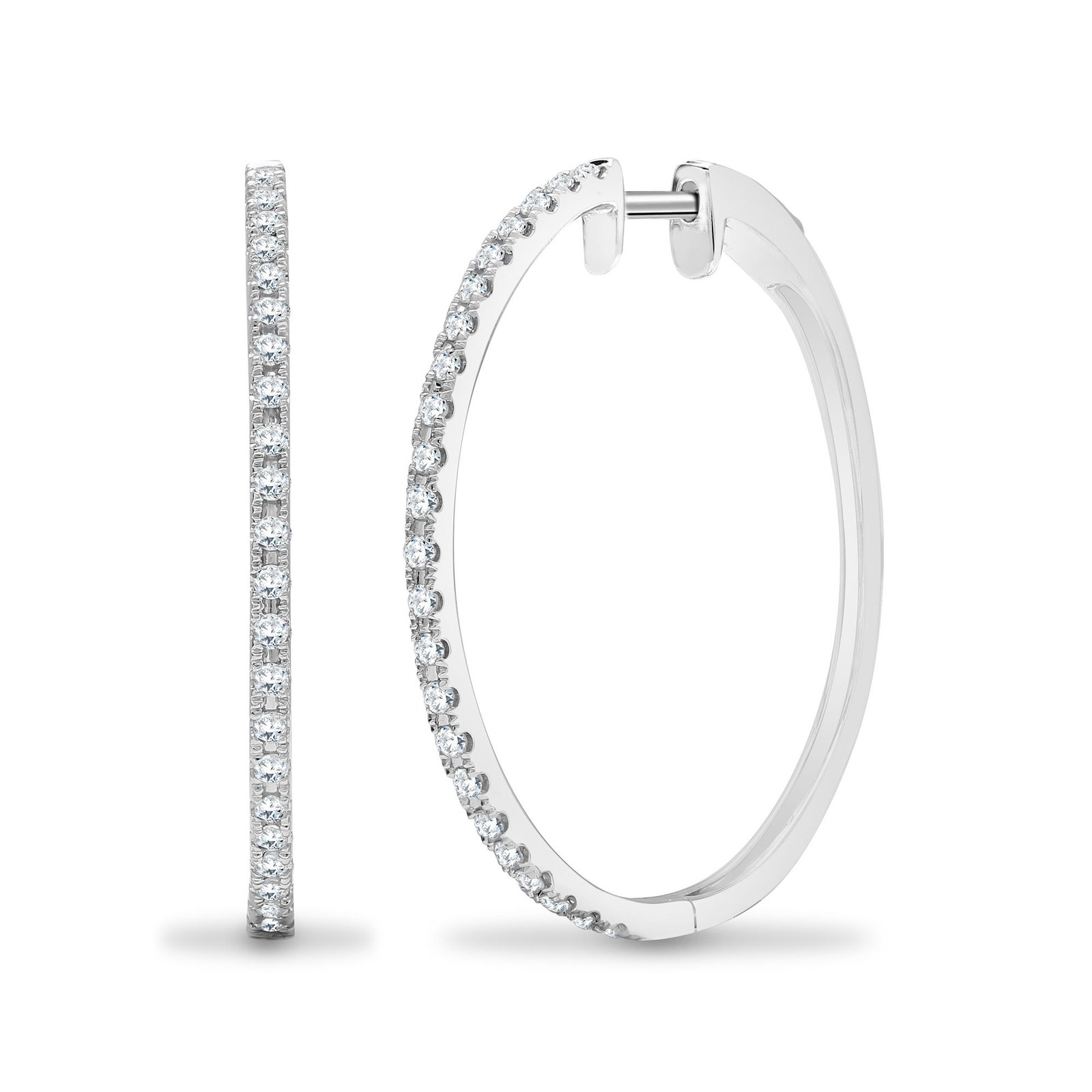 18E444 | 18ct White 0.48ct Natural Diamond Claw Half Set Hoop Earrings