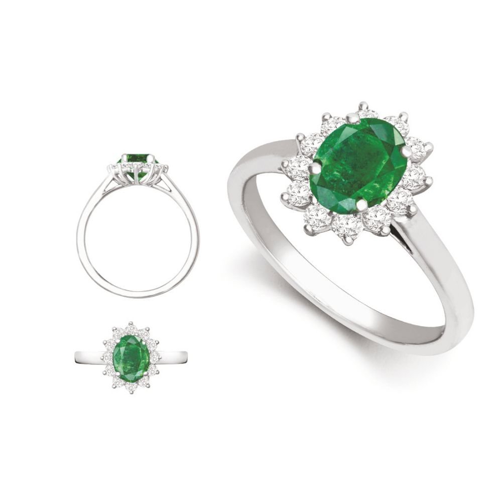 JN Jewellery 18ct White Gold 0.62ct Natural Diamond Claw-set Cluster Halo Oval Ring – Holds 8x6mm Emerald 1.25cts