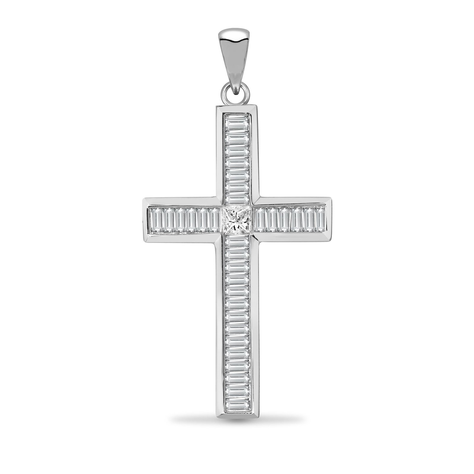 18ct White gold 1.70ct Baguette and Princess cut Natural Diamond cross. (Height includes bale/loop)