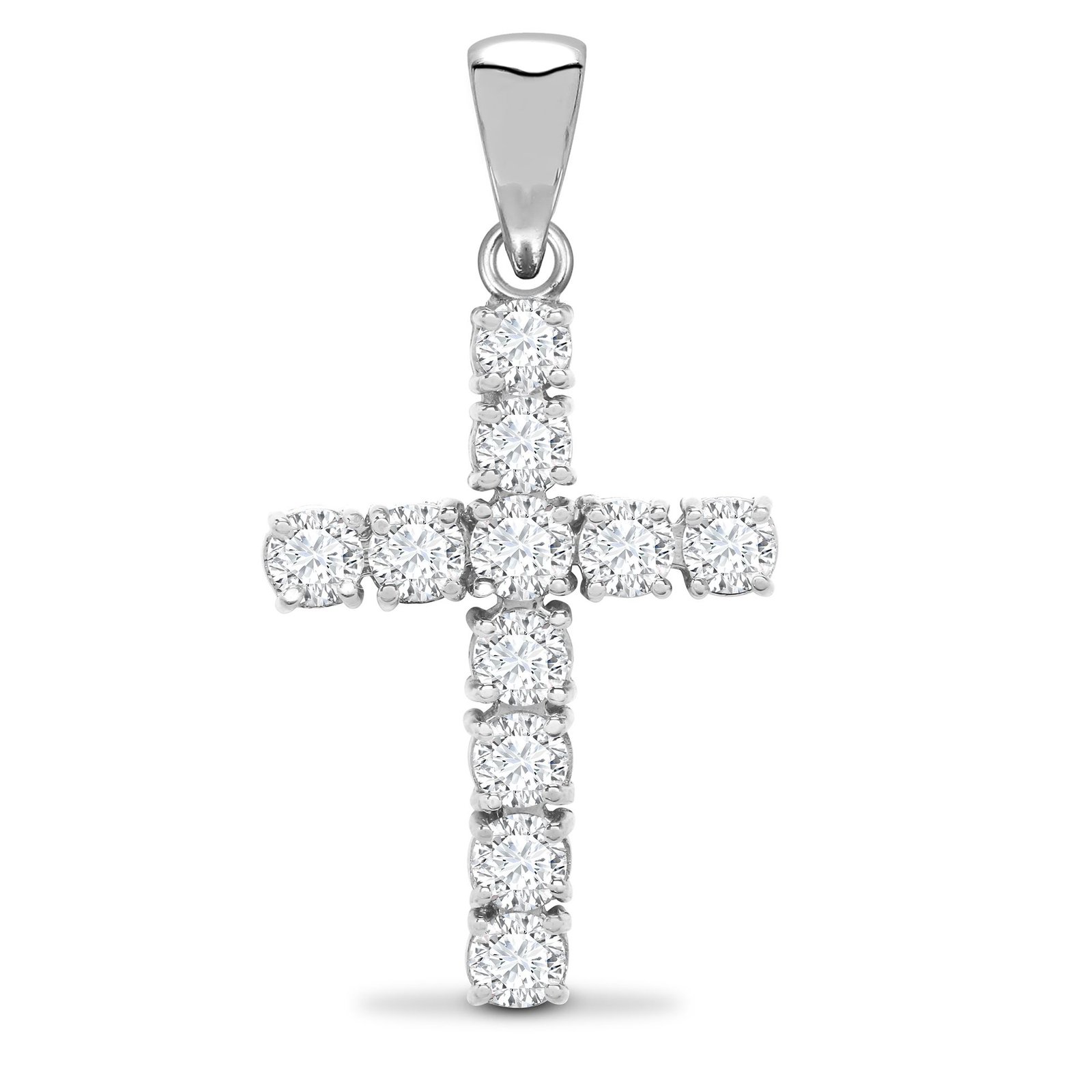 18ct White gold 1.50ct claw set Natural Diamond cross. (Height includes bale/loop)