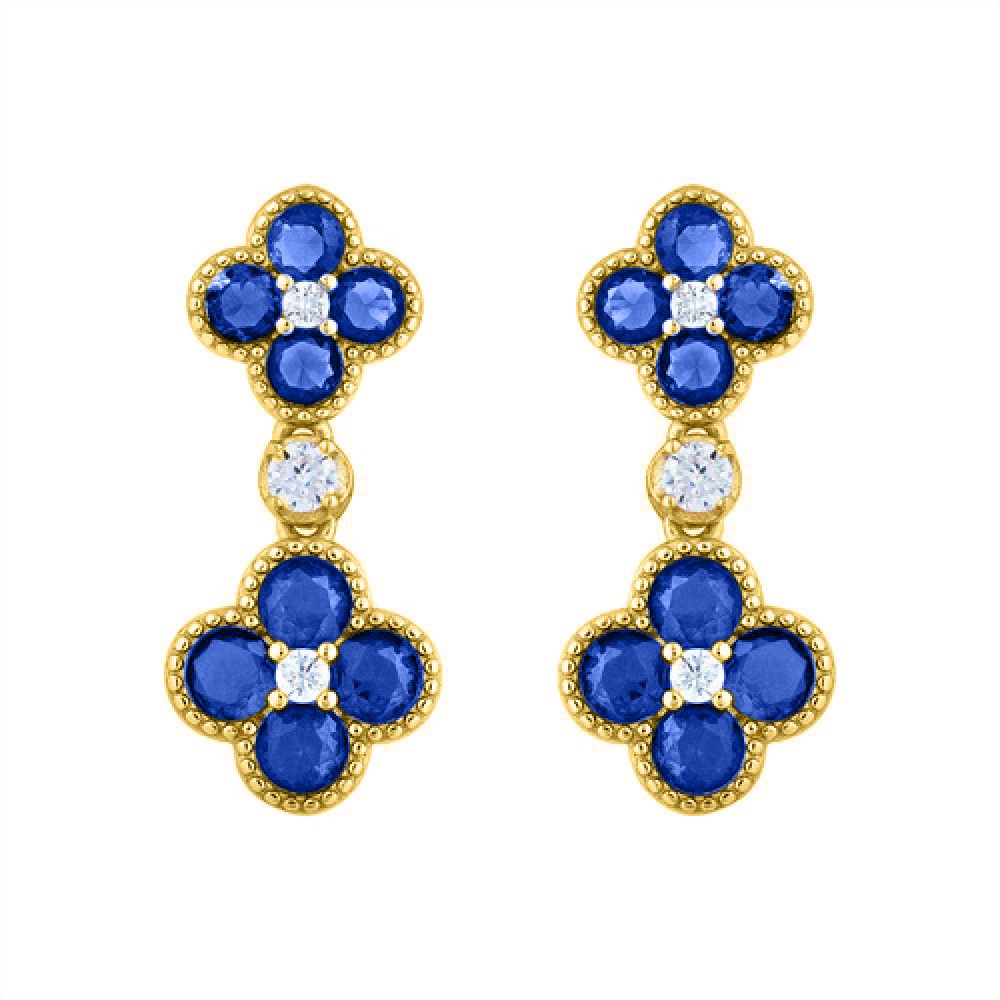 925 Silver 14ct Gold Plate CZ Set Clover Drop Earrings Blue