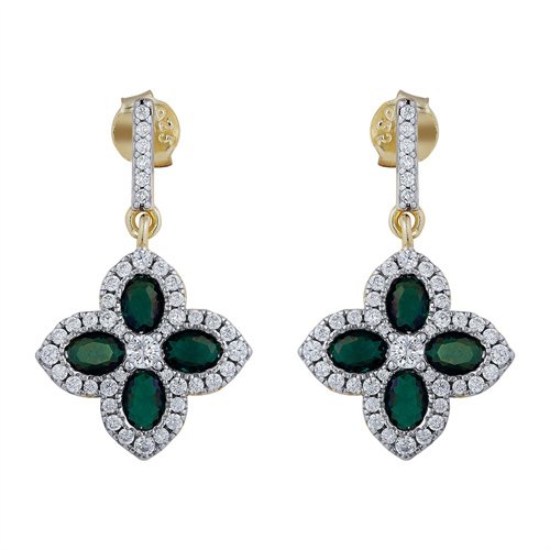 925 Silver 14ct Gold Plate CZ Set Clover Drop Earrings Green