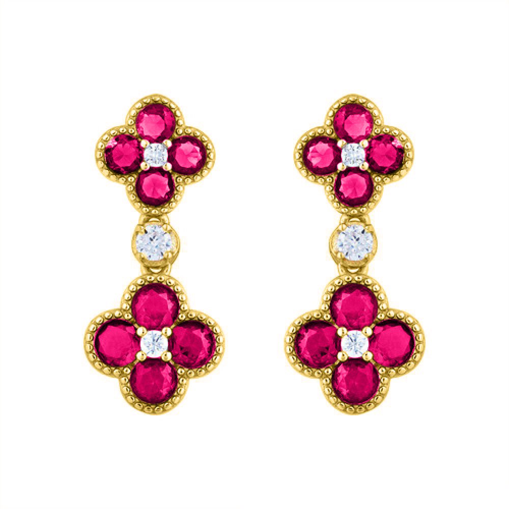 925 Silver 14ct Gold Plate CZ Set Clover Drop Earrings Red