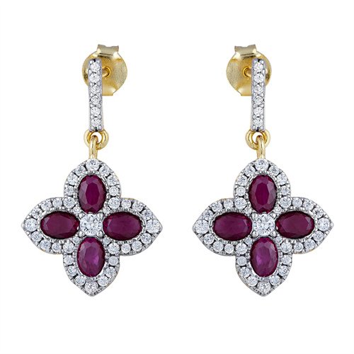 925 Silver 14ct Gold Plate CZ Set Clover Drop Earrings Red