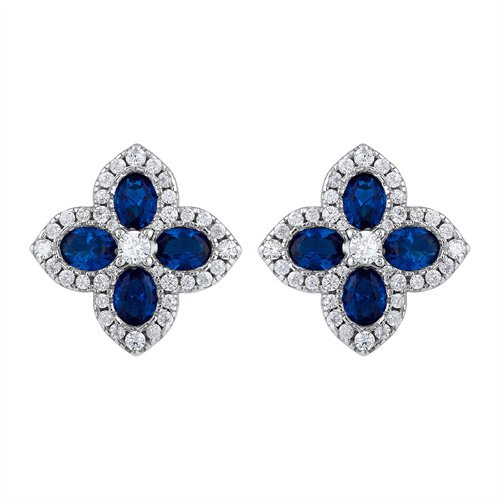 925 Silver 14ct Gold Plate CZ Set Clover Stud Earrings Blue