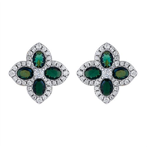 925 Silver 14ct Gold Plate CZ Set Clover Stud Earrings Green