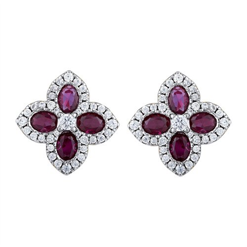 925 Silver 14ct Gold Plate CZ Set Clover Stud Earrings Red