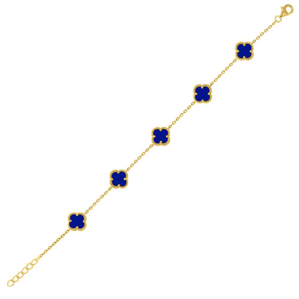 925 Silver 14ct Gold Plated Blue Agate Clover Bracelet
