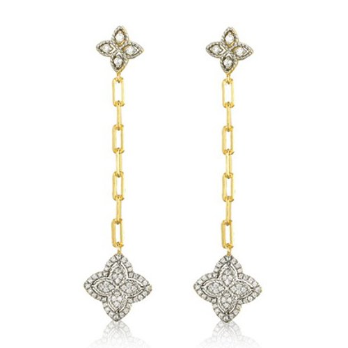925 Silver 14ct Gold Plated CZ Set Clover Drop Earrings
