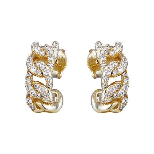 925 Silver 14ct Gold Plated CZ Set Curb Half Hoop Earrings Stud Earrings