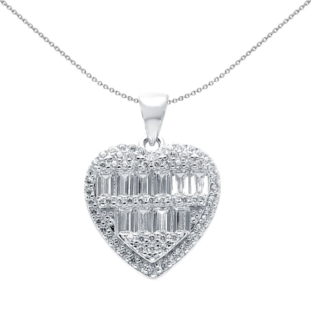 925 Silver CZ Brilliant and Baguette Cut Heart