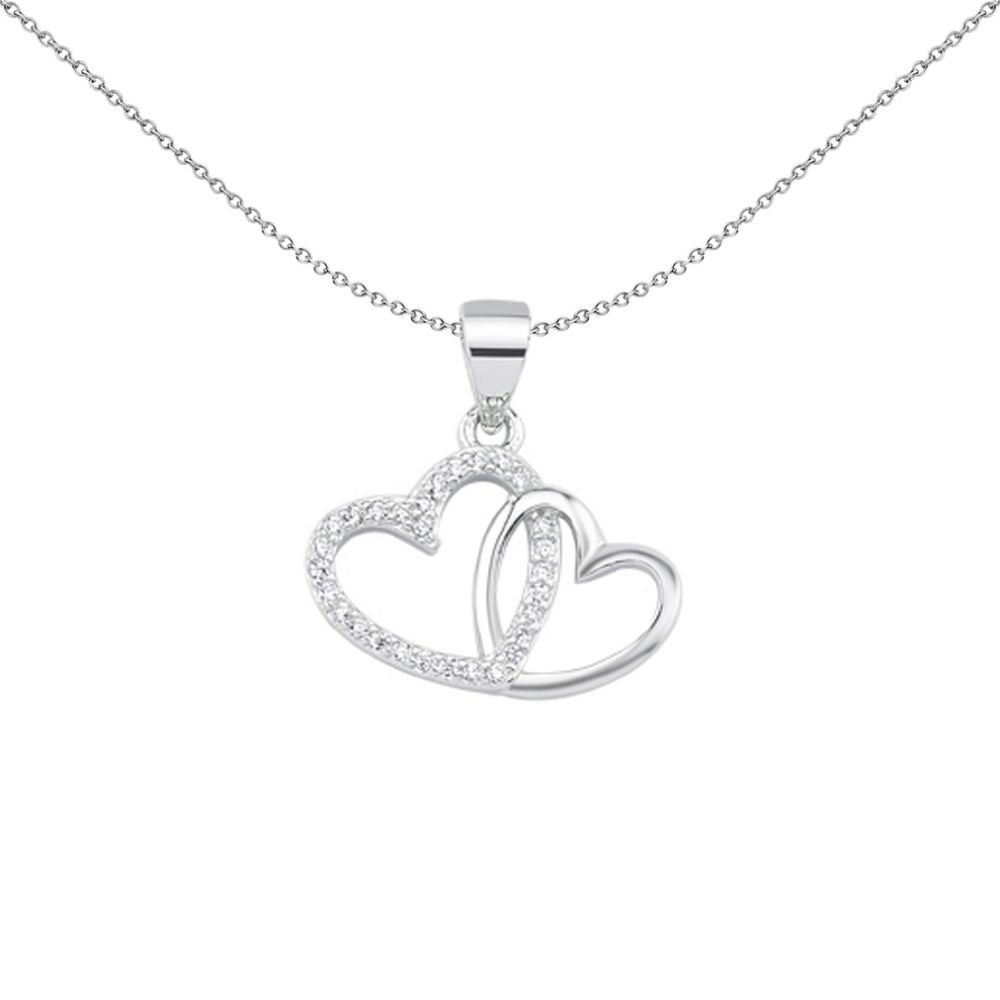 925 Silver CZ Double heart Pendant