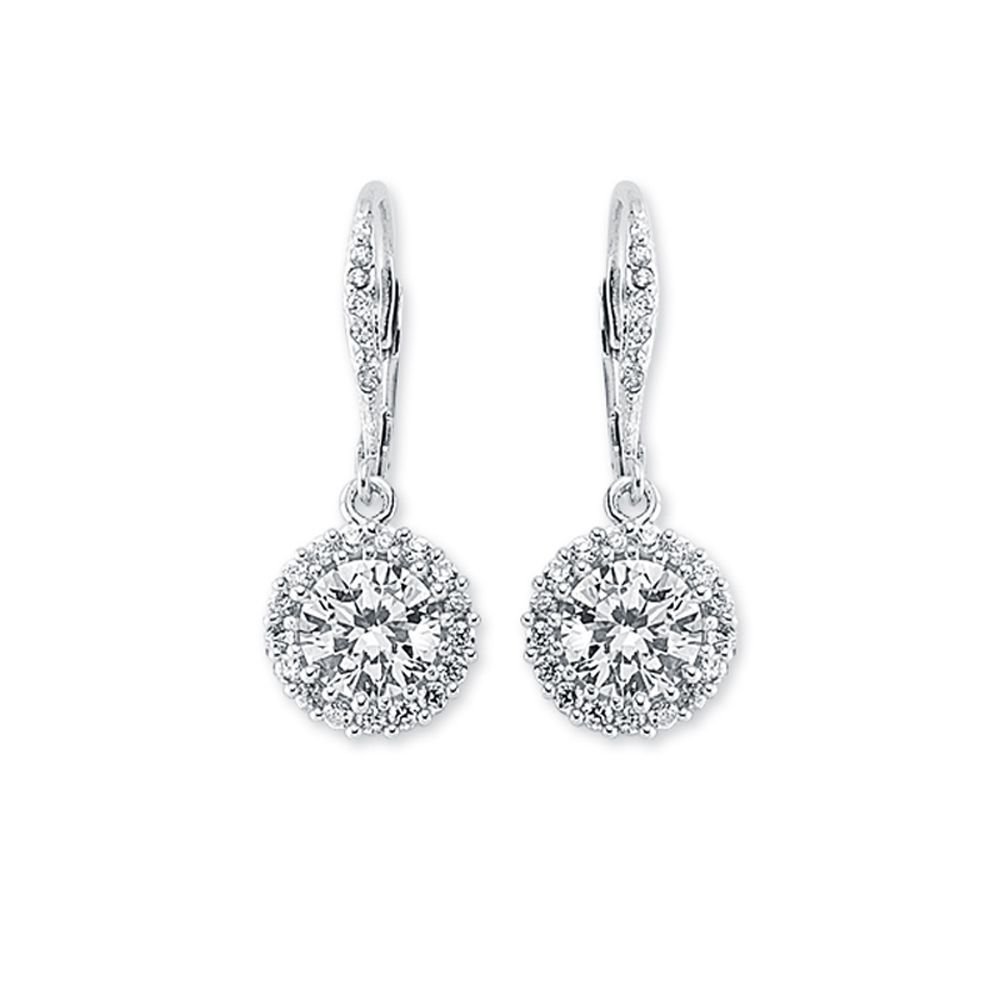 925 Silver CZ Set Halo Cluster Drop Earrings