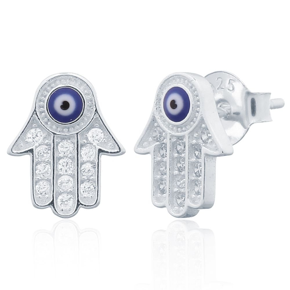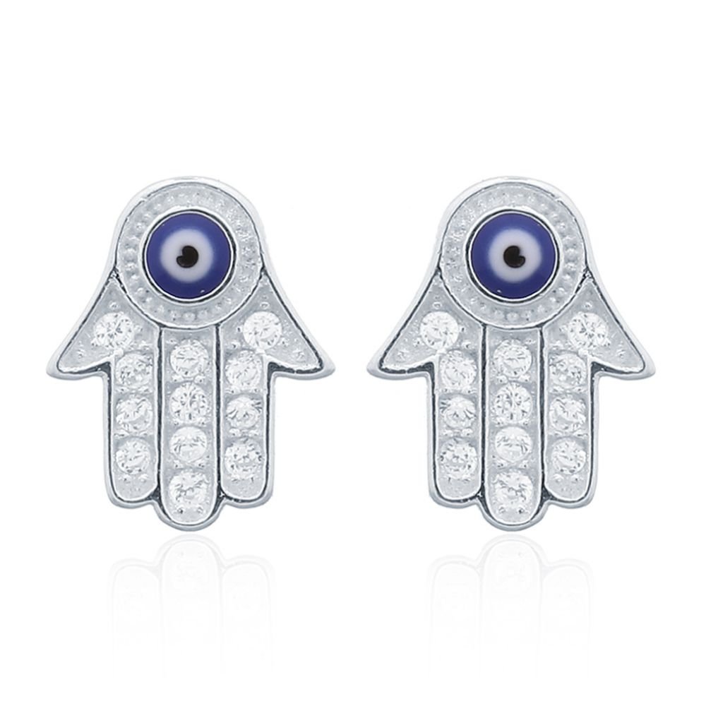 925 Silver CZ Set Hamsa Earrings