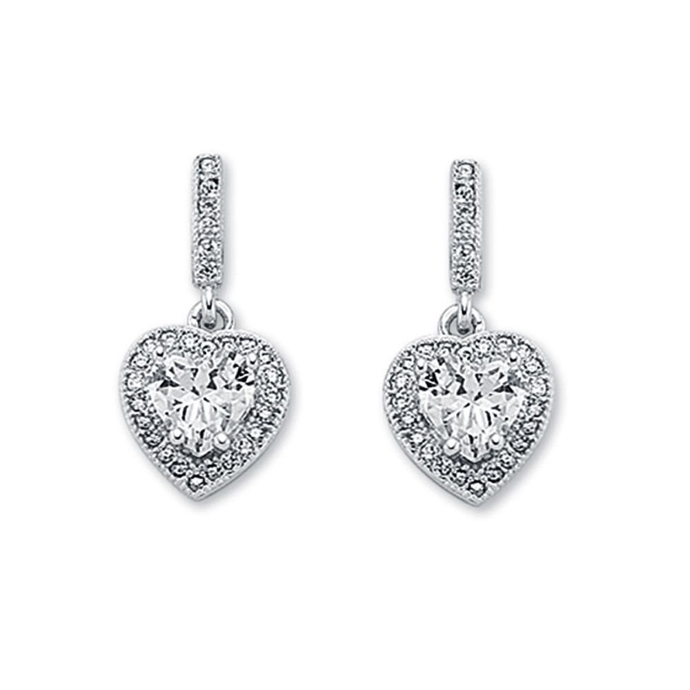 925 Silver CZ Set Heart Shape Cluster Stud Drop Earrings