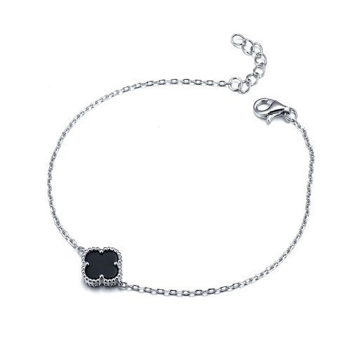 925 Silver Rhodium Clover Bracelet Onyx