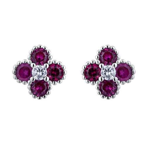 925 Silver Rhodium CZ Set Clover Stud Earrings