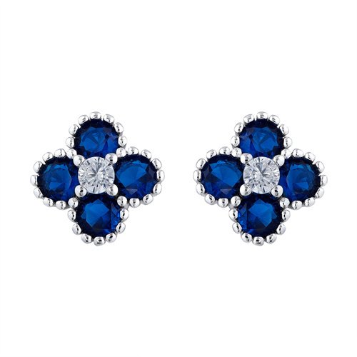 925 Silver Rhodium CZ Set Clover Stud Earrings