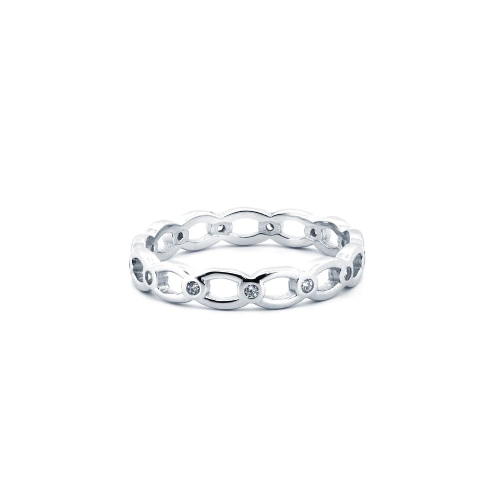 925 Silver Rhodium CZ Set Dress Ring