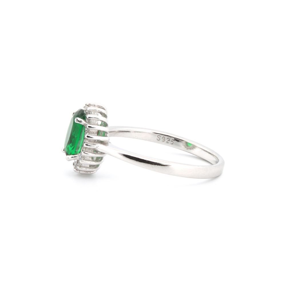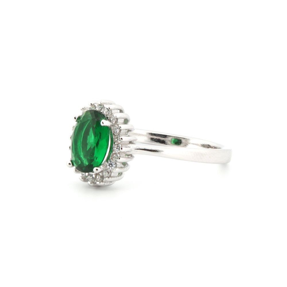 925 Silver Rhodium CZ Set Oval Cluster Emerald Green Centre