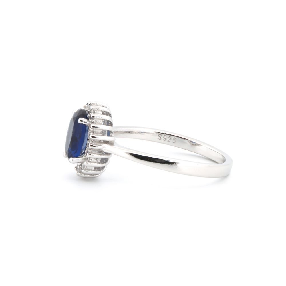 Be the first to review “925 Silver Rhodium CZ Set Oval Cluster Sapphire Blue Centre”