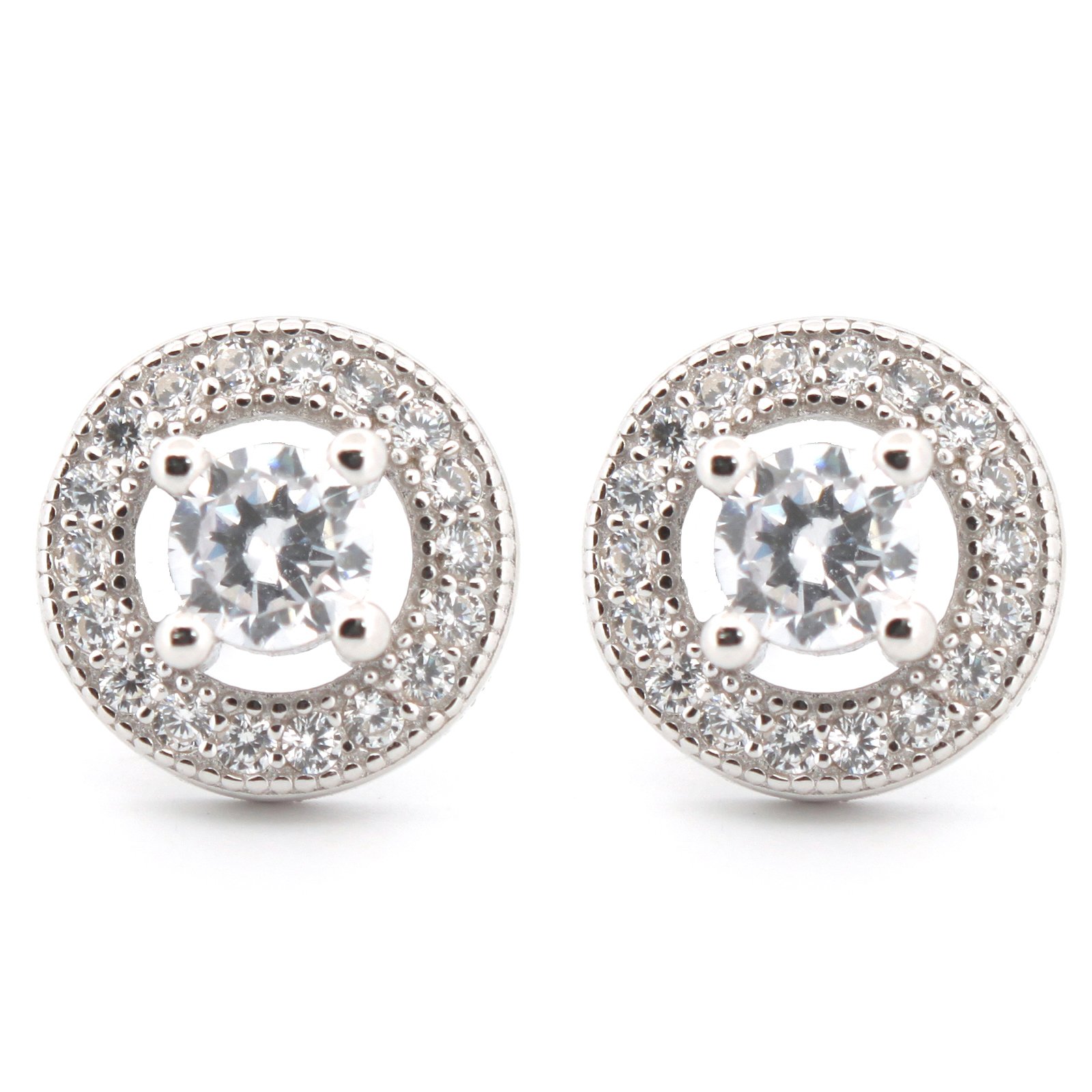 925 Silver Rhodium Halo CZ Stud Earrings White