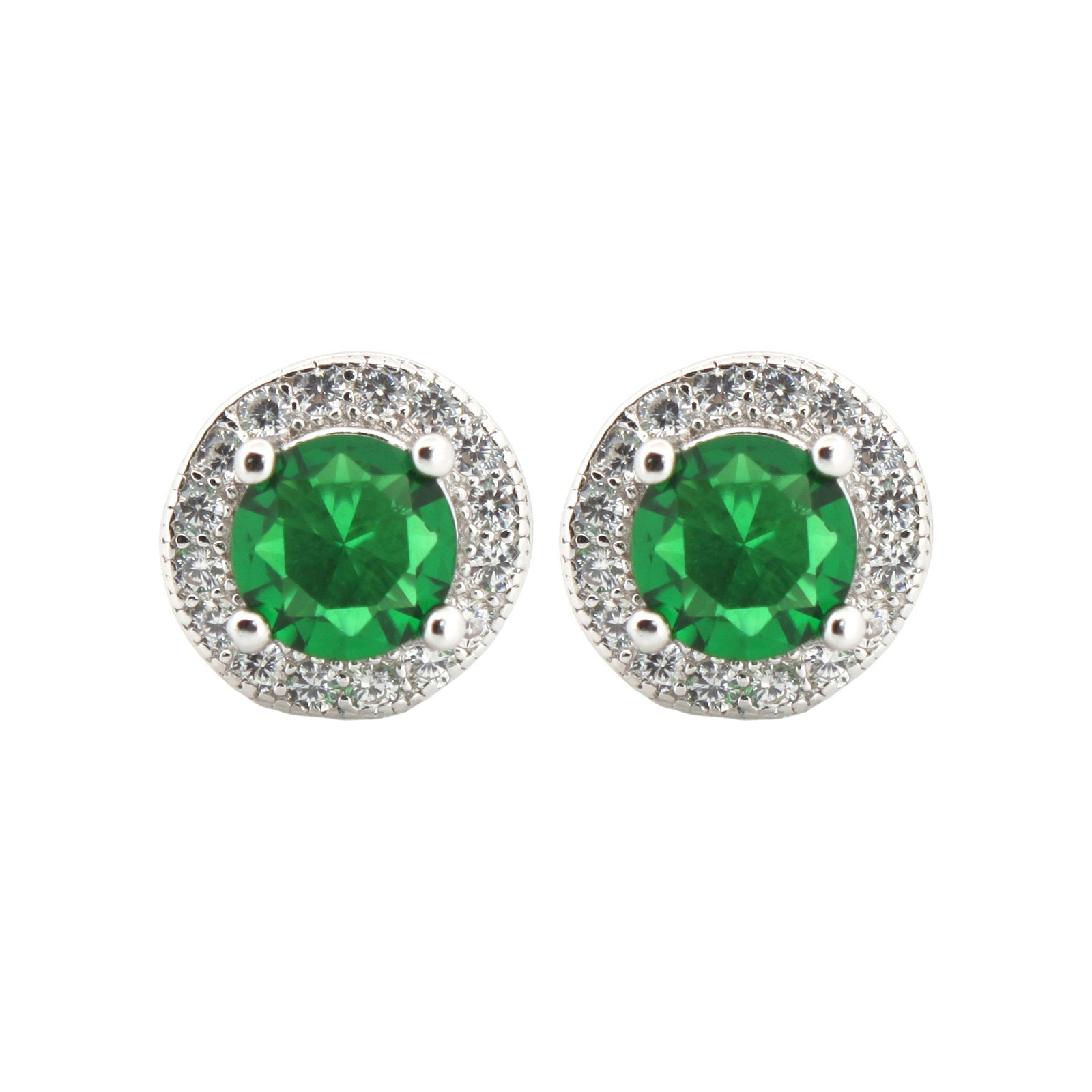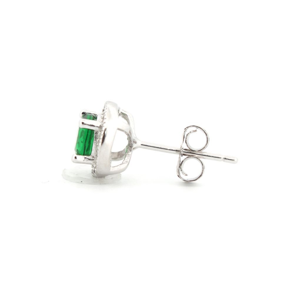 Be the first to review “925 Silver Rhodium Halo Stud Earrings Emerald Centre CZ”