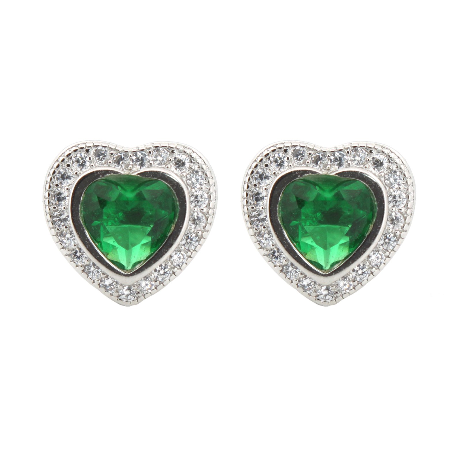 Be the first to review “925 Silver Rhodium Heart Shape Stud Earrings Emerald Centre CZ”
