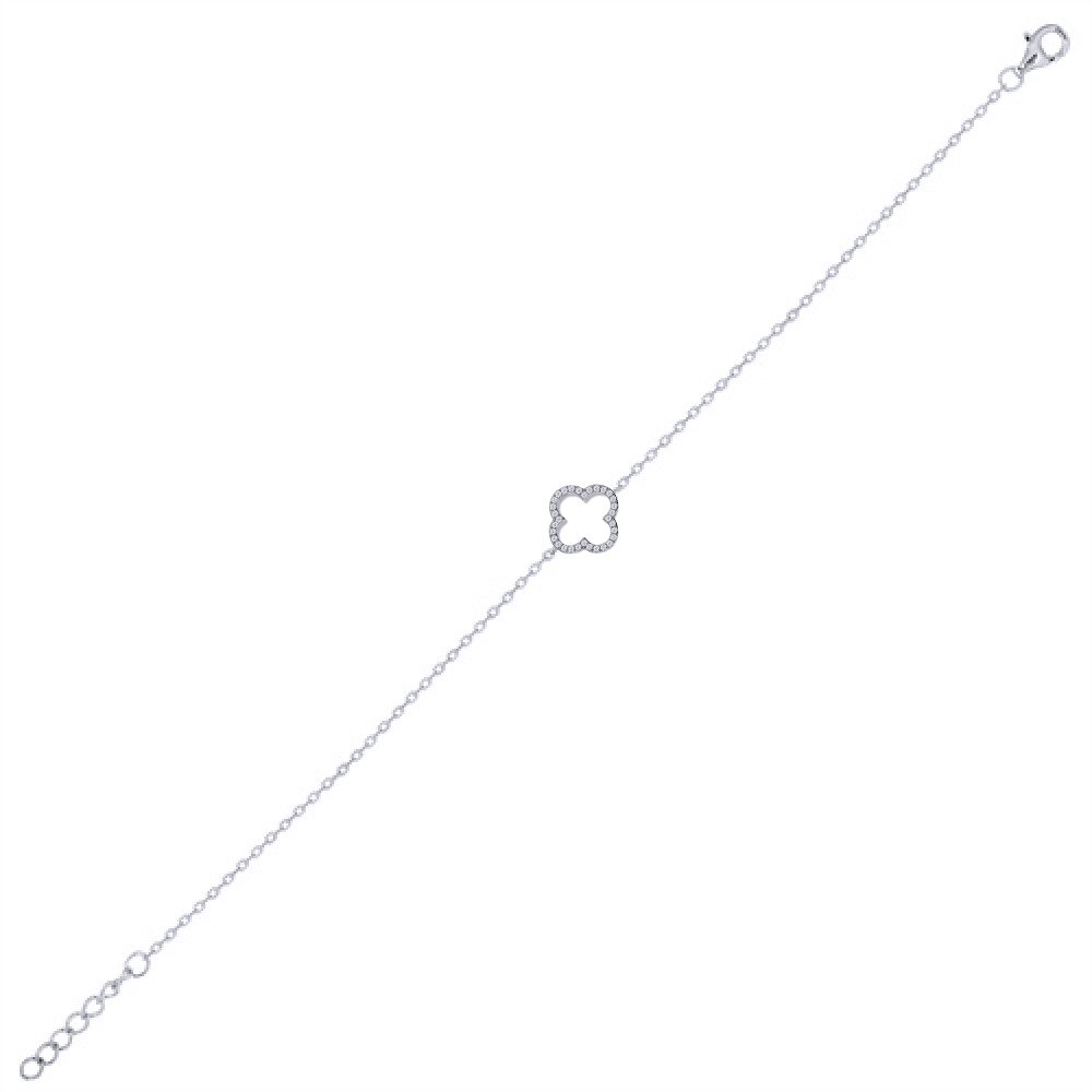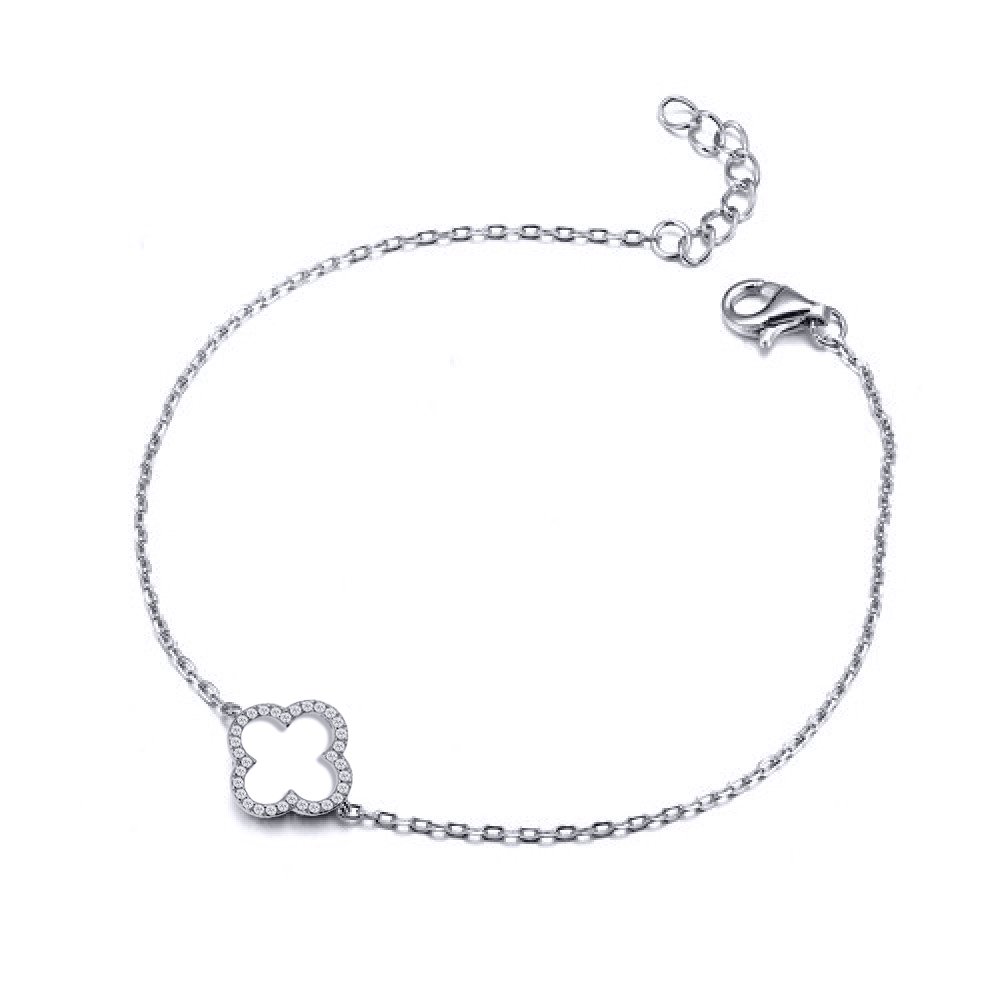 925 Silver Rhodium Plated CZ Set Clover Bracelet