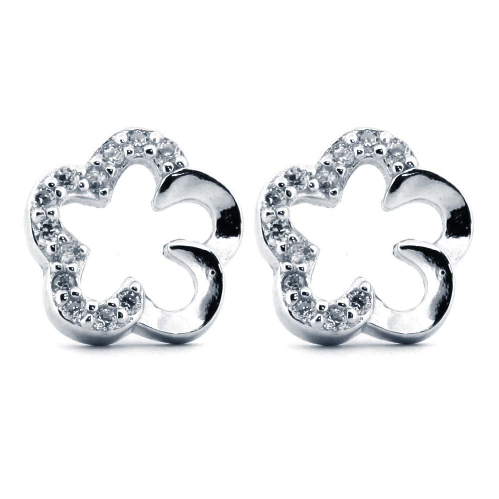 925 Silver Rhodium Plated CZ Set Clover Stud Earrings