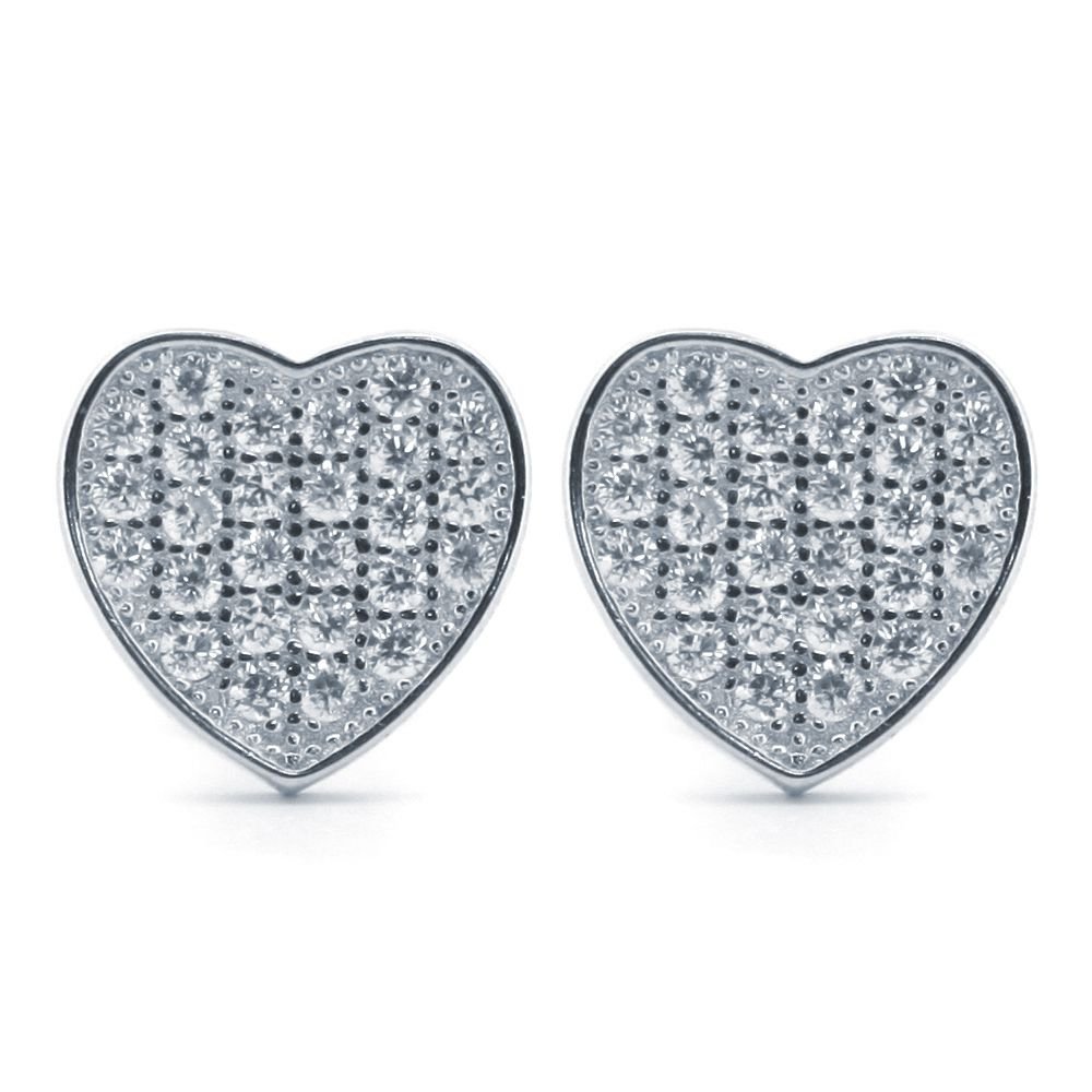 925 Silver Rhodium Plated CZ Set Heart Stud Earrings