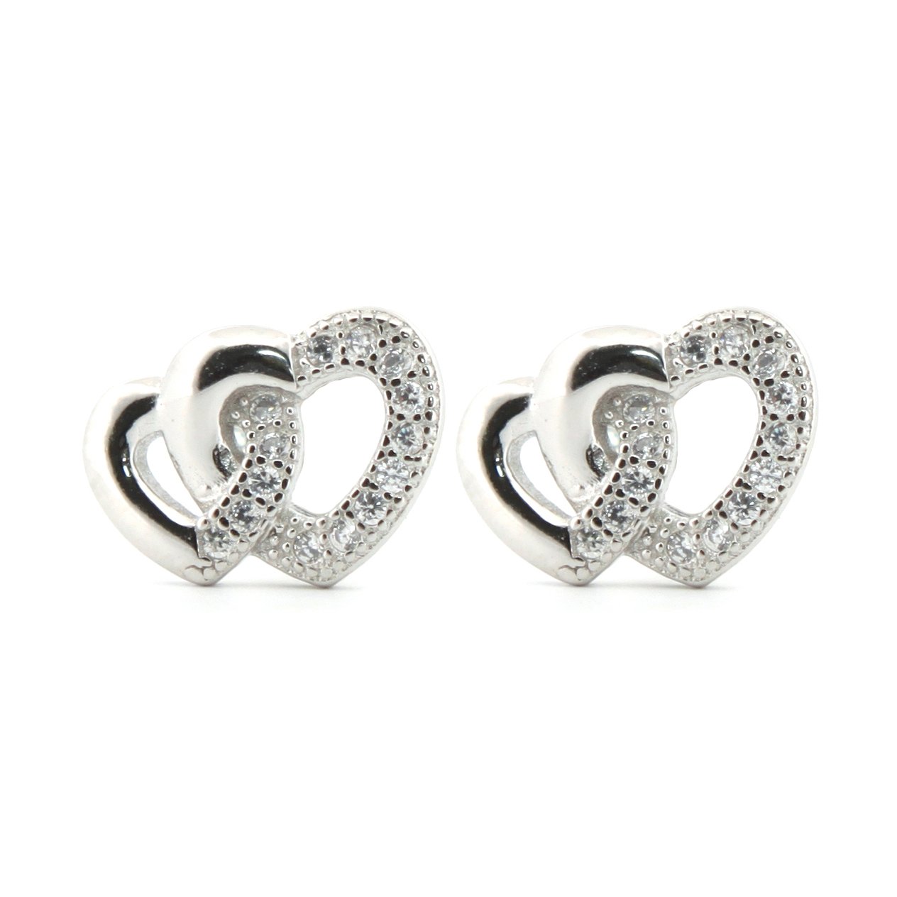 925 Silver Rhodium Plated CZ Set Heart Stud Earrings