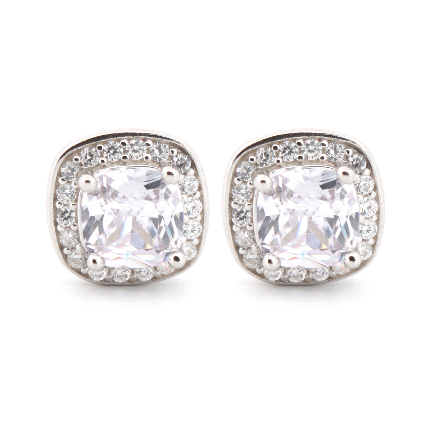 925 Silver Rhodium Plated CZ Set Stud Earrings