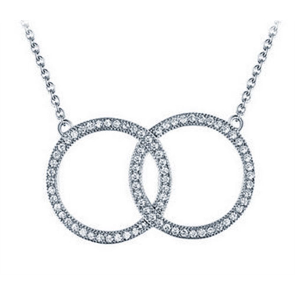 925 Silver Rhodium Plated CZ Set Twin Circle of Life Necklace