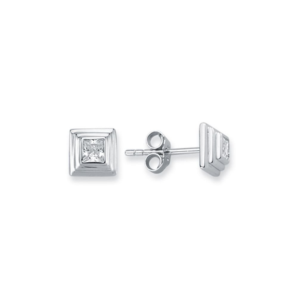 925 SilverTiered Wedding Cake Solitare 5mm Square CZ Set Stud Earrings
