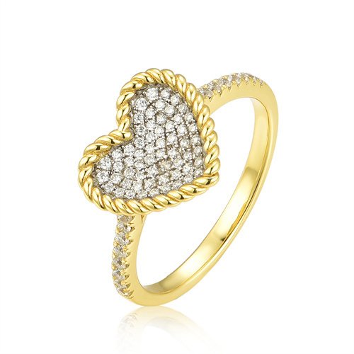 925 Siver 14ct Gold Plated CZ Set Heart Cluster Ring