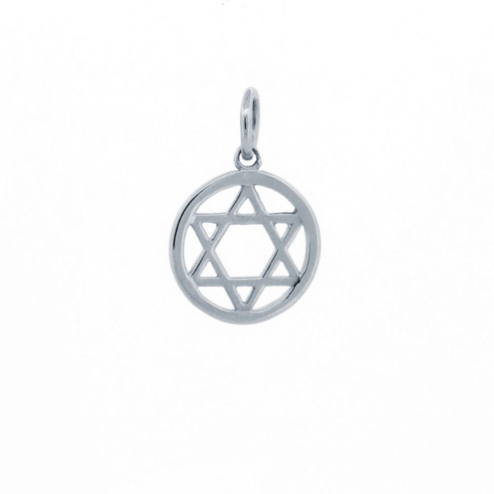 Solid 925 Sterling Silver hand finished polished circle star of David pendant (Height includes bale/loop)