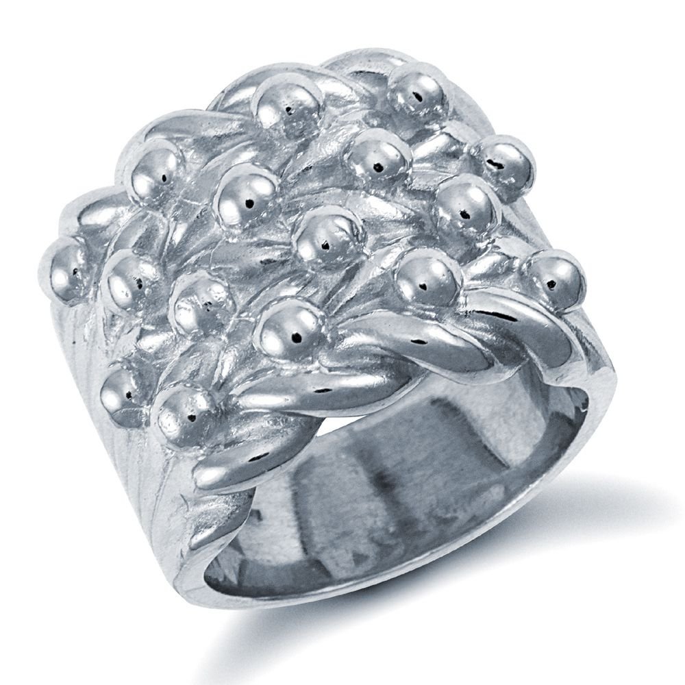 925 Sterling Silver hand finished super premium weight 4 row keeper ring with roped edges