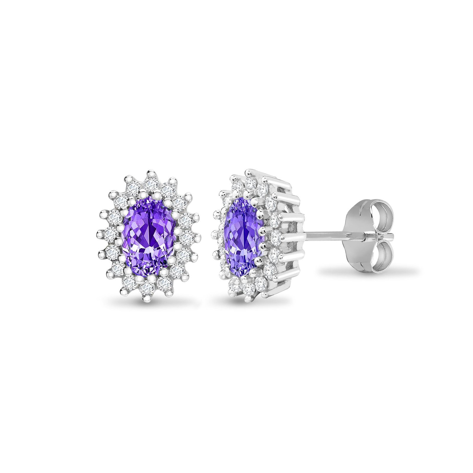 9ct white gold 25pt Natural Diamond and amethyst stud earrings.